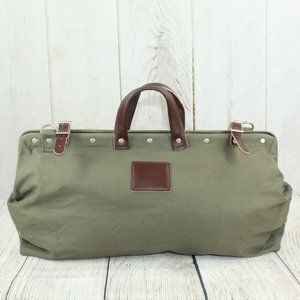 Green Canvas Leather Handle Studded Metal Clasp Heavy Duty Tool Bag