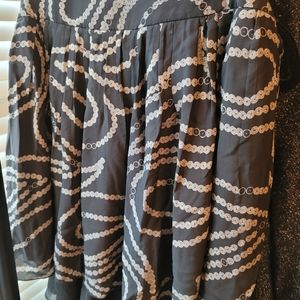 This is such a cute flowy skirt that has a necklace pattern printed on the fabric. This skirt is perfectly paired with my gray sweater in the store. It has a zipper on the side and is fully lined. The sweater is sold separately in my store.