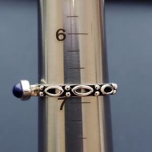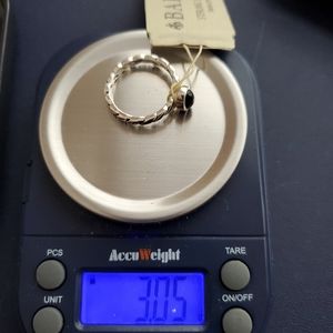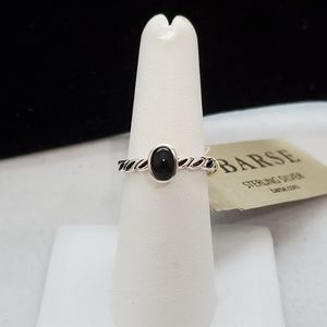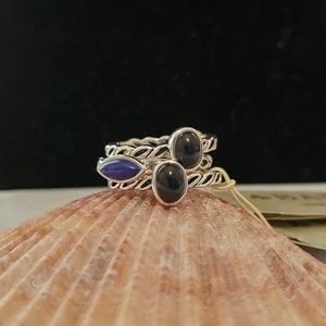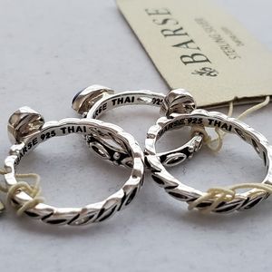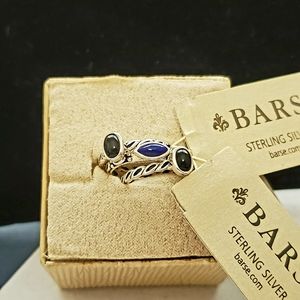 This NWT Barse sterling stack ring set features 2 onyx rings and 1 lapis ring with patterned bands. The lapis ring is approx. size 6.75+ (see pics), and the 2 onyx rings are a 7. Each ring has its own Barse tag ($38 on each tag), so they could be given or sold as individual rings. See all pics for markings & details on these!