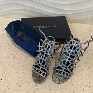 New Sergio Rossi silver puzzle sandals