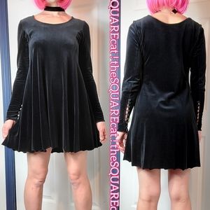 90s ๐ค betsey johnson black VELVET trapeze style button long sleeves mini dress!