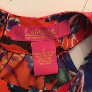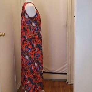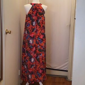 Cathrines Malandrino orange floral maxi sleeveless dress has two hidden side pockets and two button closure at the back. In excellent preowned condition size S