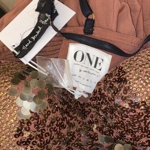 One Teaspoon Bronze Sequin Beaded Bustier Harem Balloon Pant Jumpsuit