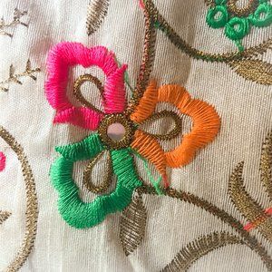 Colour: Cream with Gold , Pink and Greem Embroidery
