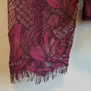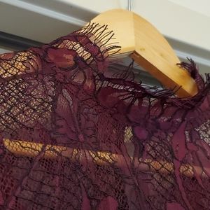 Frnch lace blouse, burgundy color, tank underneath, size medium, measures 23" shoulder to hem, 19" pit to pit, in excellent condition with no flaws, outer lace top never worn