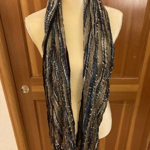 Preloved Beautiful Multicolored Chloe Metallic Fringed Crochet-Knit Scarf. So pretty. So colorful and shiny. Lightweight and dainty. Like new, worn once. No defects, stains, flaws or odors. So pretty