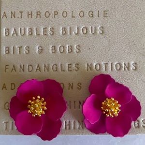 🆕WT! Anthropologie 18k Gold Post, Pink Petal Earrings