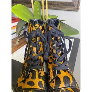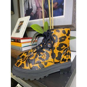 SCHUTZ Maylova Leopard Print Suede Combat Lace-Up Booties
