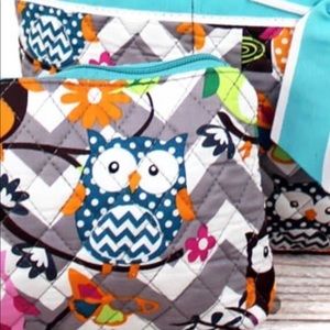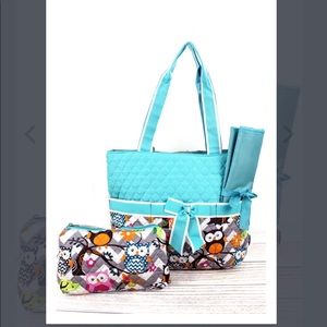 NWT Boutique- GRAY CHEVRON OWL QUILTED DIAPER BAG WITH AQUA TRIM