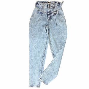 Lawman 80’s Acid Wash High Waisted Tapered Relaxed Fit Mom Jeans Vintage