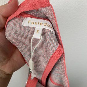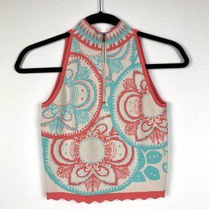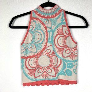 Cute women's size S Foxiedox blue, pink and ivory mock neck top. Tag was removed but threading to hold tag still attached.