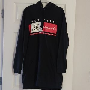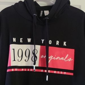 Pre-owned, great condition H&M New York black hooded sweatshirt dress. Size 8. Measurements while laying flat: chest: 20.5 inches, length: 32.5 inches