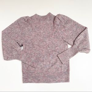 Strike a new silhouette this sweater season in a mock-neck pullover knit with wide ribbing and framed with romantic Juliet sleeves.c Mock neck Long bishop sleeves Pullover style Knit construction