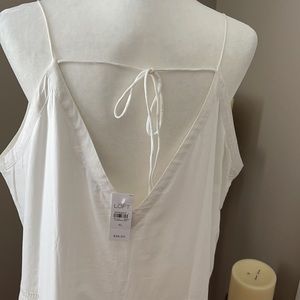 Loft Eyelet V-Neck & tie V-Back dress. Dress skirt is lined and has beautiful eyelet details all around upper half of the dress with floral embroidery on front. Beautiful and brand new dress with tag.