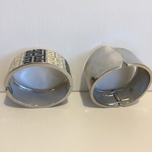 SILVER TONE BRACELETS x 2 enamel cream black geo