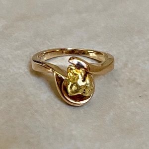 14K Yellow Gold Nugget Vintage Ring. An Alaskan gold nugget in a modern setting. Nugget is 22K. Can be worn as a midi or a pinky ring. Copyright design from an Alaskan jeweler. Durable vintage ring.