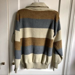 Vintage Neutral Terry Cloth Knit Striped Sweater