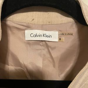 Size 8, Calvin Klein dress. Beige. Could stand to be dry cleaned but is in pretty good condition. Great for work or church. Super flattering cut.