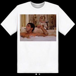 Scarface in jacuzzi graphic tee. 🤍