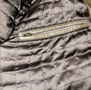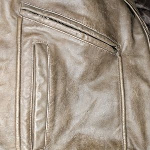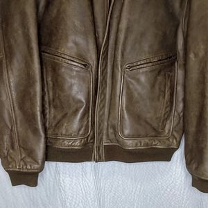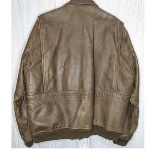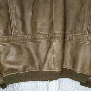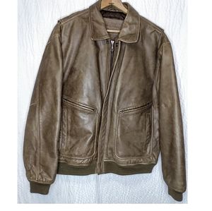 Features: Vintage, Retro, Chocolate brown, Natural distressed Buffalo Leather, quilted inside lining, 4 front pockets, 2 inside pockets, zipper & wind flap with snaps, fitted stretchy wrists and waist.
