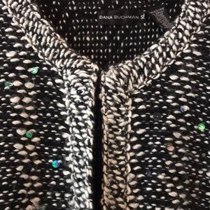 Dana buchman heavy sweater. Wool with rabbit hair so it’s fuzzy thick. Sequins scattered all over. Excellent condition and old Dana Buchman quality. Size xl