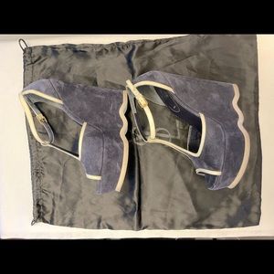 Yves Saint Laurent blue suede platform wedge 38.