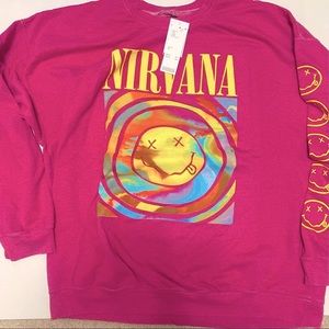 U. O. PINK NIRVANA CREW SWEATSHIRT BNWT S/M OVERSIZED fits To L/XL SHIPS QUICK!