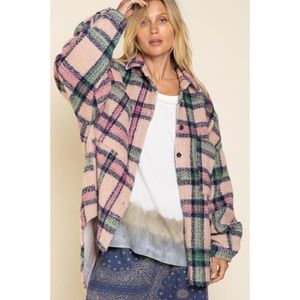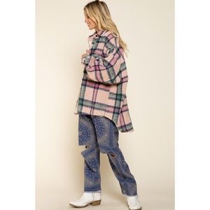SOLD OUT Pink Plaid Distressed Boho Oversized Shacket
