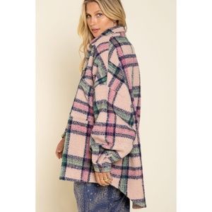 Pink multi colored plaid oversized shacket - shirt/jacket. Oversized fit.