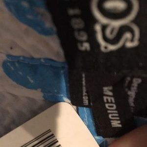 Lined with blue and white palm print material