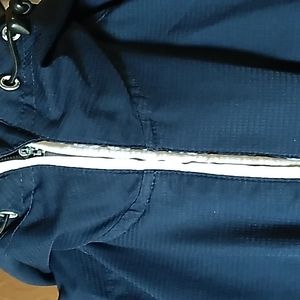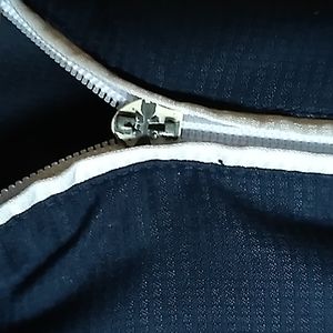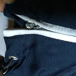 Jacket does zip but the pull on the zipper broke, also some paint stain inside see last photo