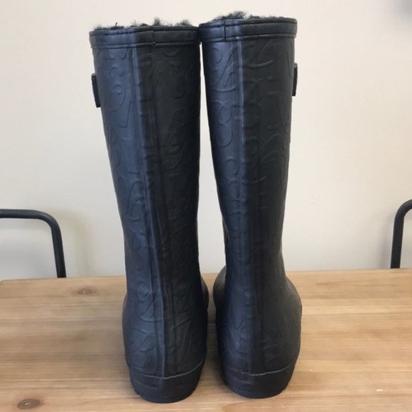 New ⬆️see pictures Color:Jet Black🌸 Tall Rubber Sheepskin Winter Boots What do you get when you combine the warmth of Ugg boots with the cuteness, durability and waterproof Wellington rain boots? MOOVBOOT of course❤️ MoovCulture® is an Australia based company that has created and designed a luxury patterned rubber boot with 100% Australian Merino grade sheepskin lining Size Medium (like size 7-7.5 US) Size 6/8 fits true to size Size 9/10 Fits a bit smaller because of sheepskin lining Style Tall 35 cm