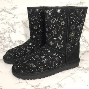 This horoscope-inspired take on our iconic Classic features shimmering zodiac signs in a metallic print with dazzling crystal accents. The festive suede upper is grounded on a lightweight, cushioned sole for all-day support, and finished with our ultra-soft UGGplush™ wool blend for cloud-like coziness.
