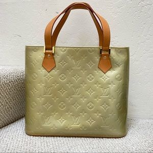 Louis Vuitton Monogram Houston tote. Vernis leather in green grey monogram. Flat handles and gold-tone hardware. Interior lined with leather. Interior zip pocket and slip pocket. Dust bag is included.
