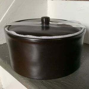 Black, ceramic, lidded tortilla warmer