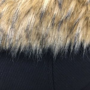 Cole Haan Wool Blend Faux Fur Trim Hooded Coat