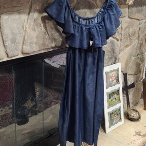 NWT Blue Denim Dress by Be-Girl. Elastic shoulders and neck with ruffle. Front pockets on each side. Smoke and pet free. Size 2X