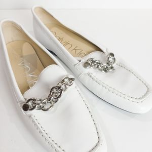 A slip-on silhouette and padded insole enhance the comfort and style of the Elanna loafers from Calvin Klein.