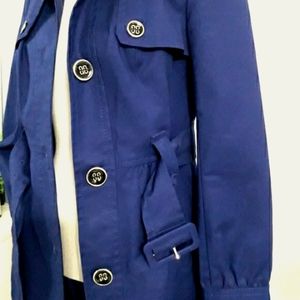 semi-dark blue long jacket impeccable used and in perfect condition large black buttons with golden edges, large pockets with perfect stitching, long sleeves wide cuffs with two large buttons, fully lined jacket up to the sleeves, wide strap lined buckle 53 'long strap '