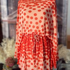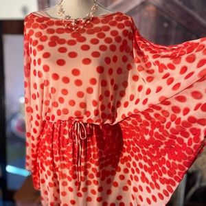 This is a beautiful, fun, butterfly, cold shoulder dress. I only wore it once.It has a cinched waist and is super fun to wear. Size Medium