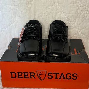 Size 11 1/2w toddler dress shoes. No scuffs on bottom because they have never been worn. Tag still attached and comes with original box.