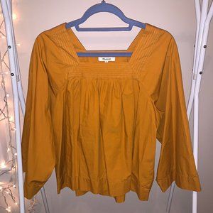 Fall, long-sleeve bell-sleeve top from Madewell! Orangey / yellowish - big Mamma Mia vibes!