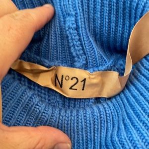 N21 is a hot designer! This beautiful denimy blue wool turtleneck is made in Italy. US 6. The back has snap buttons so u can close them and a little portion is open or have it be a mostly open back - style with shirt under it! Excellent condition (new without tags).