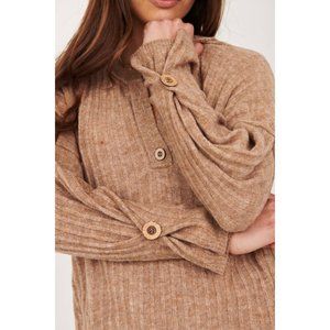 So comfy and perfect for lounging, this oversized knit pullover is featured in a henley style with a button-up neckline and a wide ribbed design.