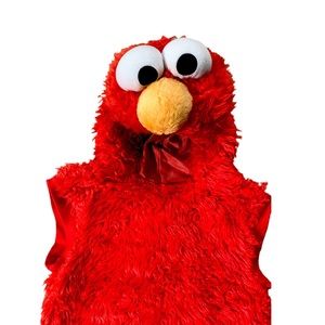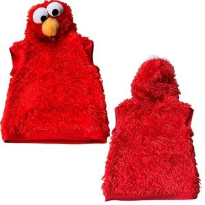 Sesame Street Elmo Vest Toddler Costume. This super plush red Elmo costume is so cute, your lil’ one will want to wear it all of the time! Fun fuzzy pull over vest w/padded Elmo face built into interior lined hood. Just add your own shirt & pants for appropriate occasion or weather. Perfect for Halloween, pictures, birthday parties or dress up! Excellent condition.