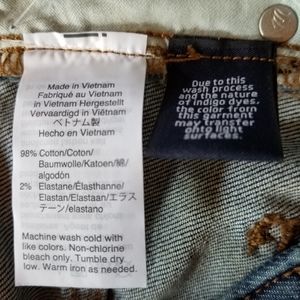 With a 5-pocket jean style in a medium wash denim.