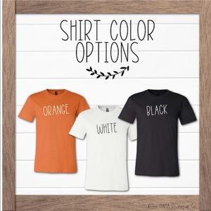 These shirts are available in black, white and heather autumn (burnt orange). Please specify the color you want when you order! They are all preshrunk, and are made from ring spun cotton and polyester blends. These are made right here in the USA, and are high quality! They are created with a commercial heating press so they are machine washable without losing quality!