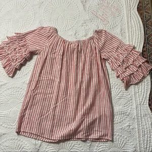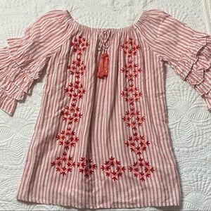 GB girls red & white stripe embroidered dress