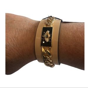 Bee🐝 Dazzling Goldtone Chain &Beige Cuff Bracelet