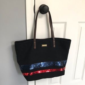 Tommy Hilfiger Black Wool Tote blue & red sequins
